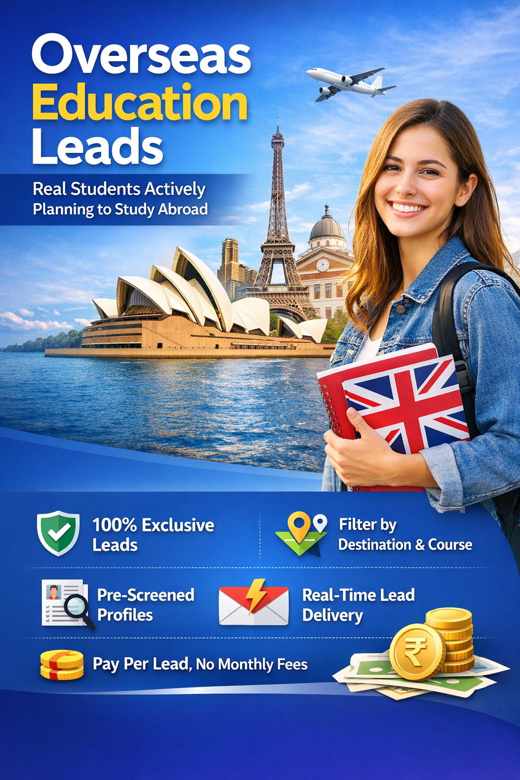Our Overseas Education Leads are exclusive, pre-screened, and delivered in real time—so you focus on counselling and enrolments, not cold follow-ups.
